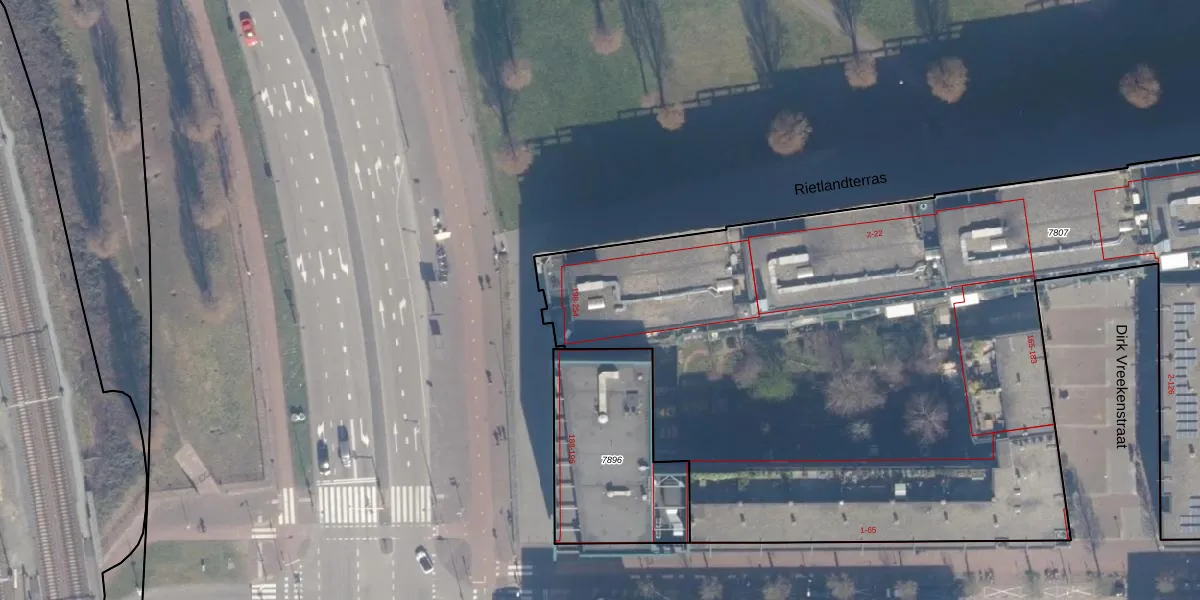 Het adres ligt op het perceel ASD02-A-7807, dat zich in de kadastrale gemeente Amsterdam bevindt. De oppervlakte van het perceel is 1,3 ha. Dat is groter dan gemiddeld in Amsterdam, waar de gemiddelde perceeloppervlakte op 2763,93 m² ligt. De grootste perceeloppervlakte in de kadastrale gemeente is 14,3 ha. De kleinste oppervlakte bedraagt 0 m². Er zijn 381 adressen aanwezig op het perceel. De laatste wijziging in het de Basisregistratie Kadaster (BRK) was op 11-01-2012.