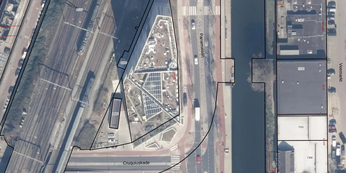 Het adres is gelegen op perceel 8486 in de sectie A en de kadastrale gemeente Amsterdam. De kadastrale aanduiding is aldus ASD02-A-8486. Het perceel is kleiner dan gemiddeld in Amsterdam. Het perceel is 1890 m² groot, terwijl het gemiddelde ligt op 2763,93 m². Het grootste perceel in de kadastrale gemeente is 14,3 ha. Het kleinste perceel heeft een oppervlakte van 0 m². Er zijn 256 adressen aanwezig op het perceel. De huidige grenzen van het perceel zijn digitaal in de Basisregistratie Kadaster (BRK) geregistreerd op 02-06-2025.