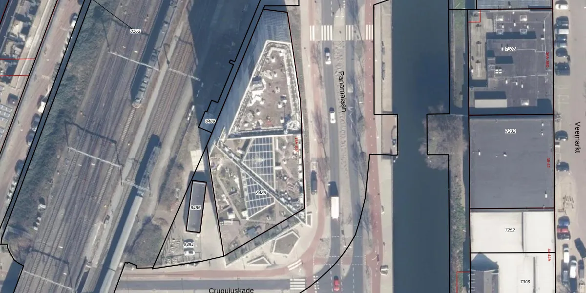 Het adres is gelegen op perceel 8486 in de sectie A en de kadastrale gemeente Amsterdam. De kadastrale aanduiding is aldus ASD02-A-8486. Het perceel is kleiner dan gemiddeld in Amsterdam. Het perceel is 1890 m² groot, terwijl het gemiddelde ligt op 2763,93 m². De grootste perceeloppervlakte in de kadastrale gemeente is 14,3 ha. De kleinste oppervlakte bedraagt 0 m². Er zijn 256 adressen aanwezig op het perceel. De huidige grenzen van het perceel zijn digitaal in de Basisregistratie Kadaster (BRK) geregistreerd op 02-06-2025.