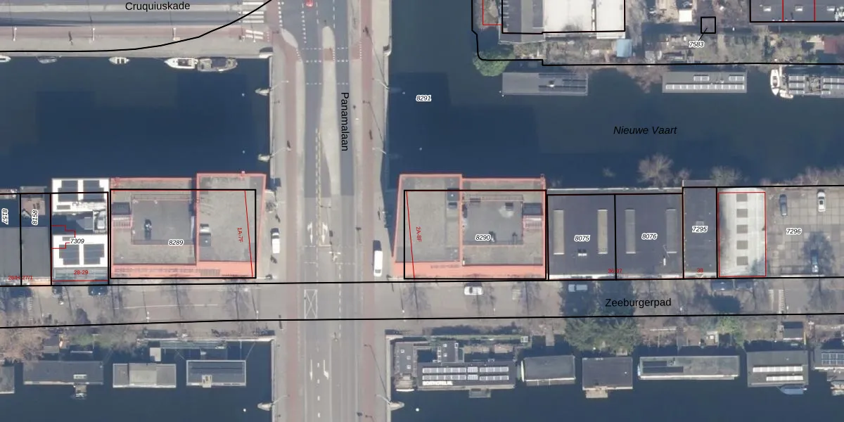 Panamalaan 8-F is gelegen op kadastraal perceel ASD02A8290. Deze kadastrale aanduiding is uniek en wordt gebruikt door het Kadaster om eigendomsrechten en andere zakelijke rechten vast te leggen. Het perceel maakt onderdeel uit van de kadastrale gemeente Amsterdam.