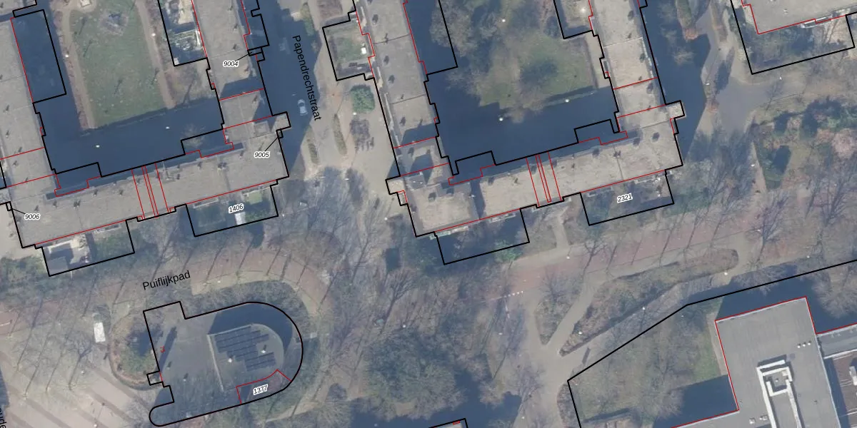 Het perceel waarop Papendrechtstraat 107 staat heeft een oppervlakte van 5110 m². Dit is een zeer groot perceel. De perceeloppervlakte wordt geregistreerd door het Kadaster. Gedetailleerde informatie over de maten van dit perceel kunt u vinden in het rapport Kadastrale kaart met maatvoering van Papendrechtstraat 107.