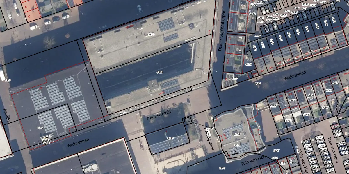 Het perceel waarop Paradijsplein 37 staat heeft een oppervlakte van 1627 m². Dit is een zeer groot perceel. De perceeloppervlakte wordt geregistreerd door het Kadaster. Gedetailleerde informatie over de maten van dit perceel kunt u vinden in het rapport Kadastrale kaart met maatvoering van Paradijsplein 37.