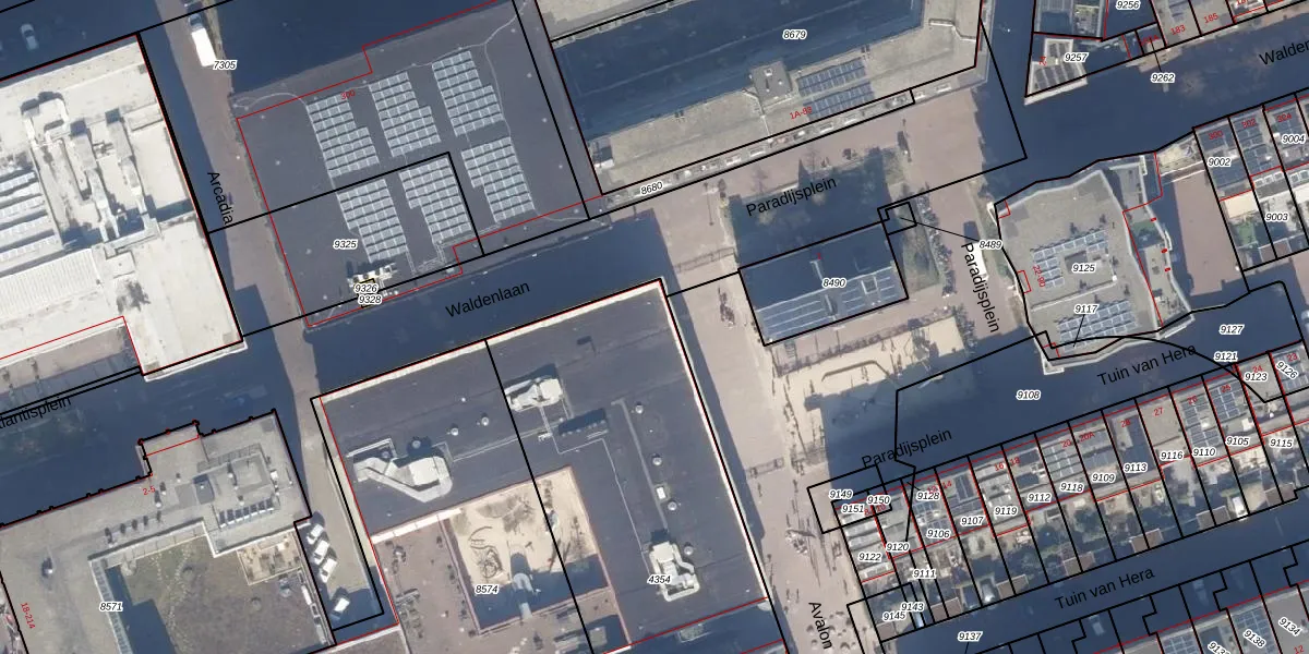 Het perceel waarop Paradijsplein 4 staat heeft een oppervlakte van 2598 m². Dit is een zeer groot perceel. De perceeloppervlakte wordt geregistreerd door het Kadaster. Gedetailleerde informatie over de maten van dit perceel kunt u vinden in het rapport Kadastrale kaart met maatvoering van Paradijsplein 4.