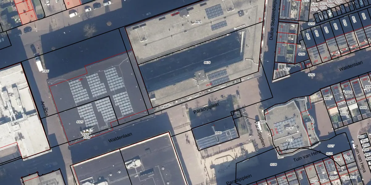 Het perceel waarop Paradijsplein 5 staat heeft een oppervlakte van 1627 m². Dit is een zeer groot perceel. De perceeloppervlakte wordt geregistreerd door het Kadaster. Gedetailleerde informatie over de maten van dit perceel kunt u vinden in het rapport Kadastrale kaart met maatvoering van Paradijsplein 5.