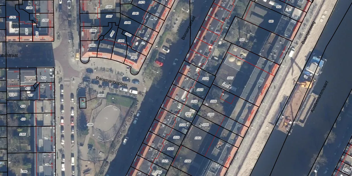 Paramariboplein 46 is gelegen op kadastraal perceel STN02M1516. Deze kadastrale aanduiding is uniek en wordt gebruikt door het Kadaster om eigendomsrechten en andere zakelijke rechten vast te leggen. Het perceel maakt onderdeel uit van de kadastrale gemeente Sloten Noord-Holland.