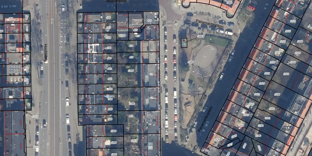 Het perceel waarop Paramariboplein 51-2 staat heeft een oppervlakte van 409 m². Dit is een groot perceel. De perceeloppervlakte wordt geregistreerd door het Kadaster. Gedetailleerde informatie over de maten van dit perceel kunt u vinden in het rapport Kadastrale kaart met maatvoering van Paramariboplein 51-2.