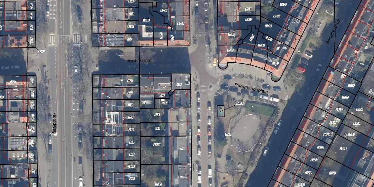 Het perceel waarop Paramariboplein 67-1 staat heeft een oppervlakte van 148 m². Dit is een middelgroot perceel. De perceeloppervlakte wordt geregistreerd door het Kadaster. Gedetailleerde informatie over de maten van dit perceel kunt u vinden in het rapport Kadastrale kaart met maatvoering van Paramariboplein 67-1.