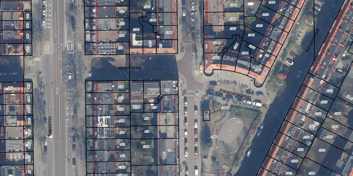 Het perceel waarop Paramariboplein 69-1 staat heeft een oppervlakte van 90 m². Dit is een klein perceel. De perceeloppervlakte wordt geregistreerd door het Kadaster. Gedetailleerde informatie over de maten van dit perceel kunt u vinden in het rapport Kadastrale kaart met maatvoering van Paramariboplein 69-1.