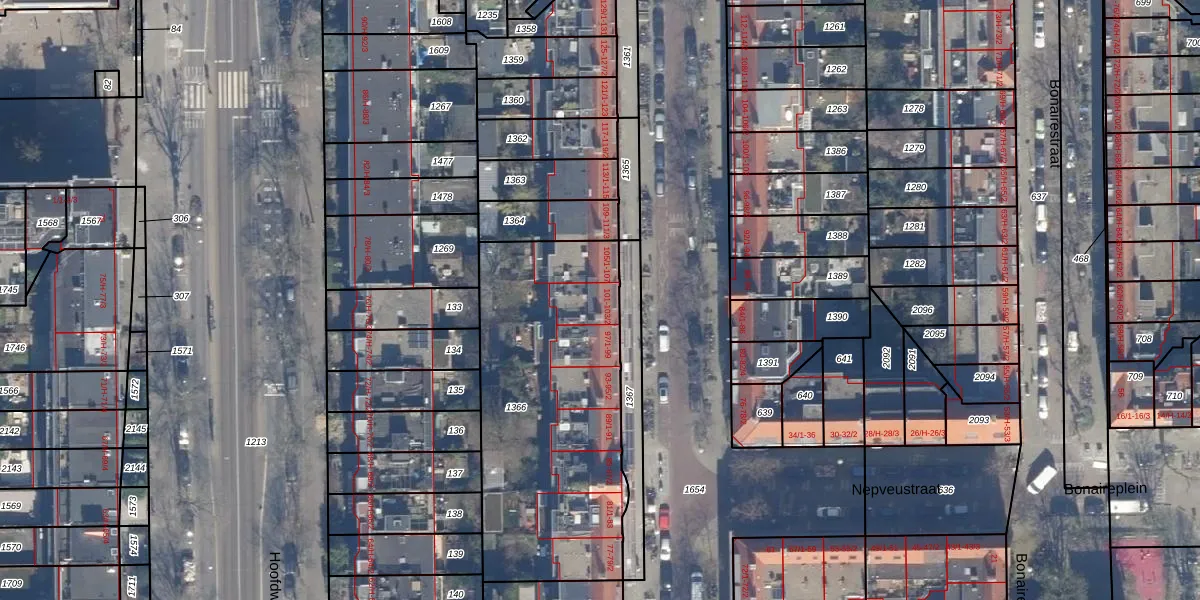 Paramaribostraat 101 is gelegen op kadastraal perceel STN02M1366. Deze kadastrale aanduiding is uniek en wordt gebruikt door het Kadaster om eigendomsrechten en andere zakelijke rechten vast te leggen. Het perceel maakt onderdeel uit van de kadastrale gemeente Sloten Noord-Holland.