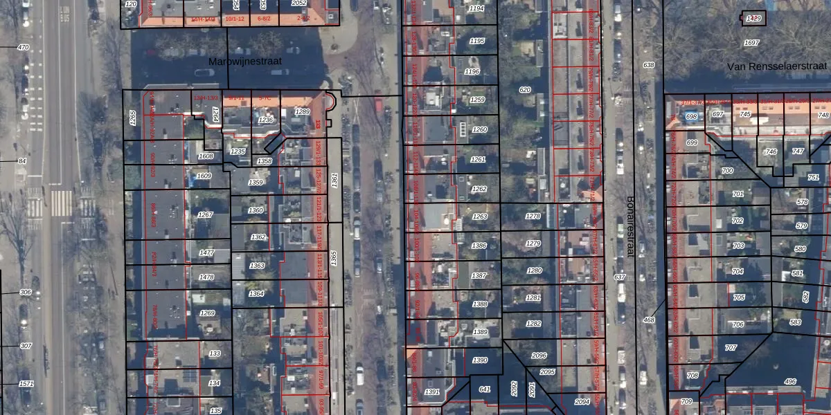 Paramaribostraat 106-1 is gelegen op kadastraal perceel STN02M1263. Deze kadastrale aanduiding is uniek en wordt gebruikt door het Kadaster om eigendomsrechten en andere zakelijke rechten vast te leggen. Het perceel maakt onderdeel uit van de kadastrale gemeente Sloten Noord-Holland.