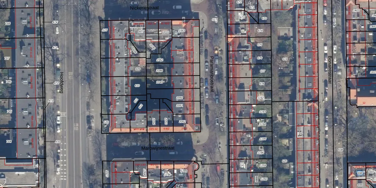 Paramaribostraat 139-1 is gelegen op kadastraal perceel STN02M2050. Deze kadastrale aanduiding is uniek en wordt gebruikt door het Kadaster om eigendomsrechten en andere zakelijke rechten vast te leggen. Het perceel maakt onderdeel uit van de kadastrale gemeente Sloten Noord-Holland.