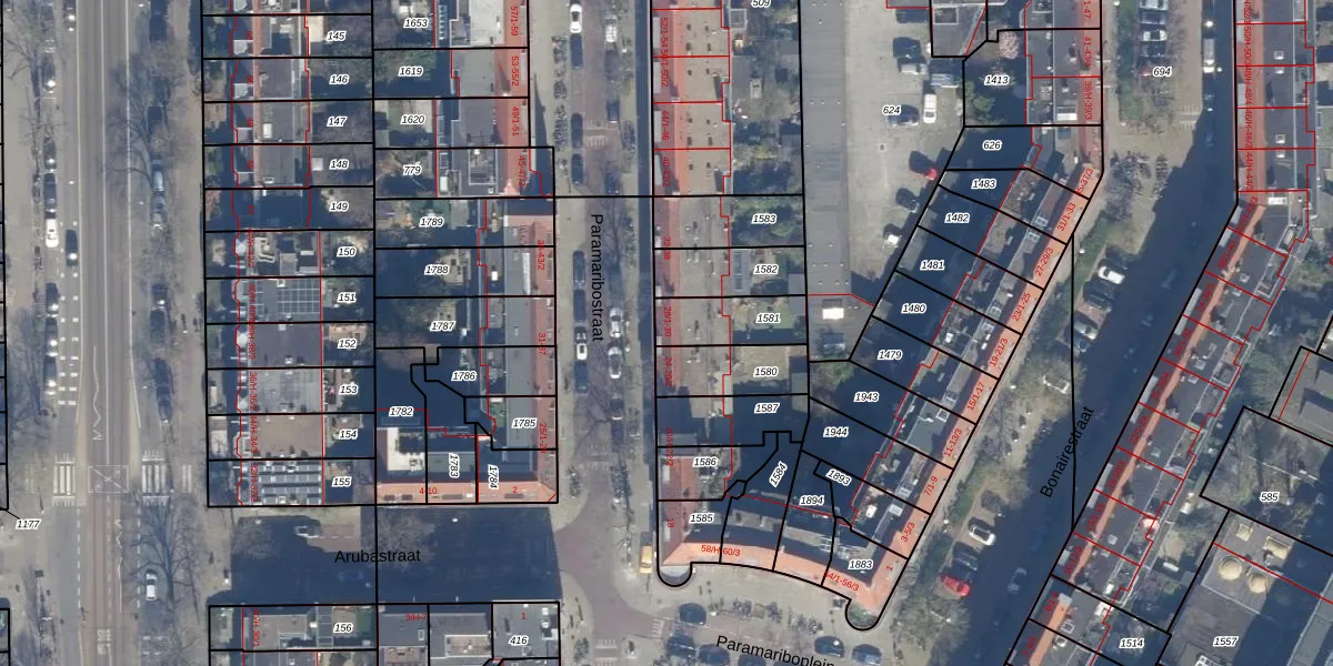 Het perceel waarop Paramaribostraat 28-2 staat heeft een oppervlakte van 171 m². Dit is een middelgroot perceel. De perceeloppervlakte wordt geregistreerd door het Kadaster. Gedetailleerde informatie over de maten van dit perceel kunt u vinden in het rapport Kadastrale kaart met maatvoering van Paramaribostraat 28-2.