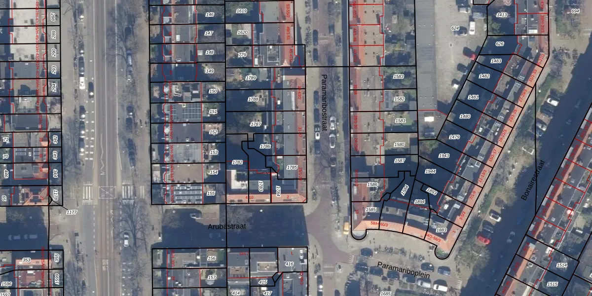 Het perceel waarop Paramaribostraat 31 staat heeft een oppervlakte van 134 m². Dit is een middelgroot perceel. De perceeloppervlakte wordt geregistreerd door het Kadaster. Gedetailleerde informatie over de maten van dit perceel kunt u vinden in het rapport Kadastrale kaart met maatvoering van Paramaribostraat 31.