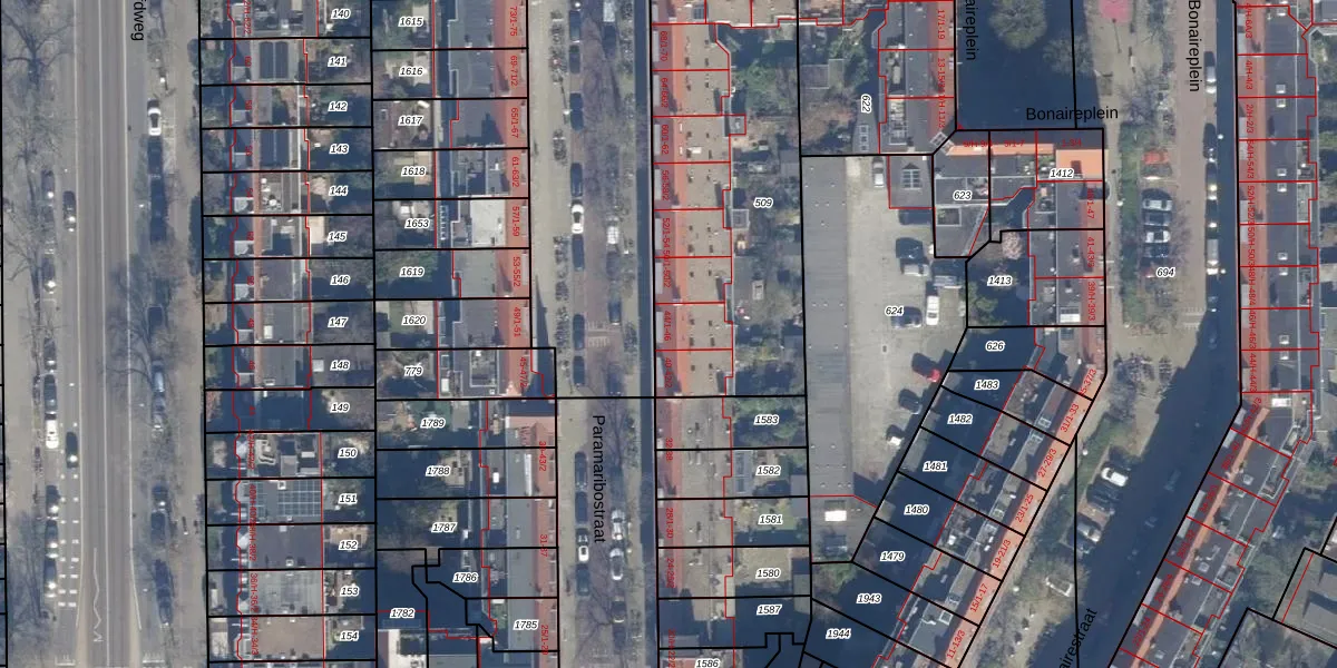 Paramaribostraat 44-2 is gelegen op kadastraal perceel STN02M509. Deze kadastrale aanduiding is uniek en wordt gebruikt door het Kadaster om eigendomsrechten en andere zakelijke rechten vast te leggen. Het perceel maakt onderdeel uit van de kadastrale gemeente Sloten Noord-Holland.
