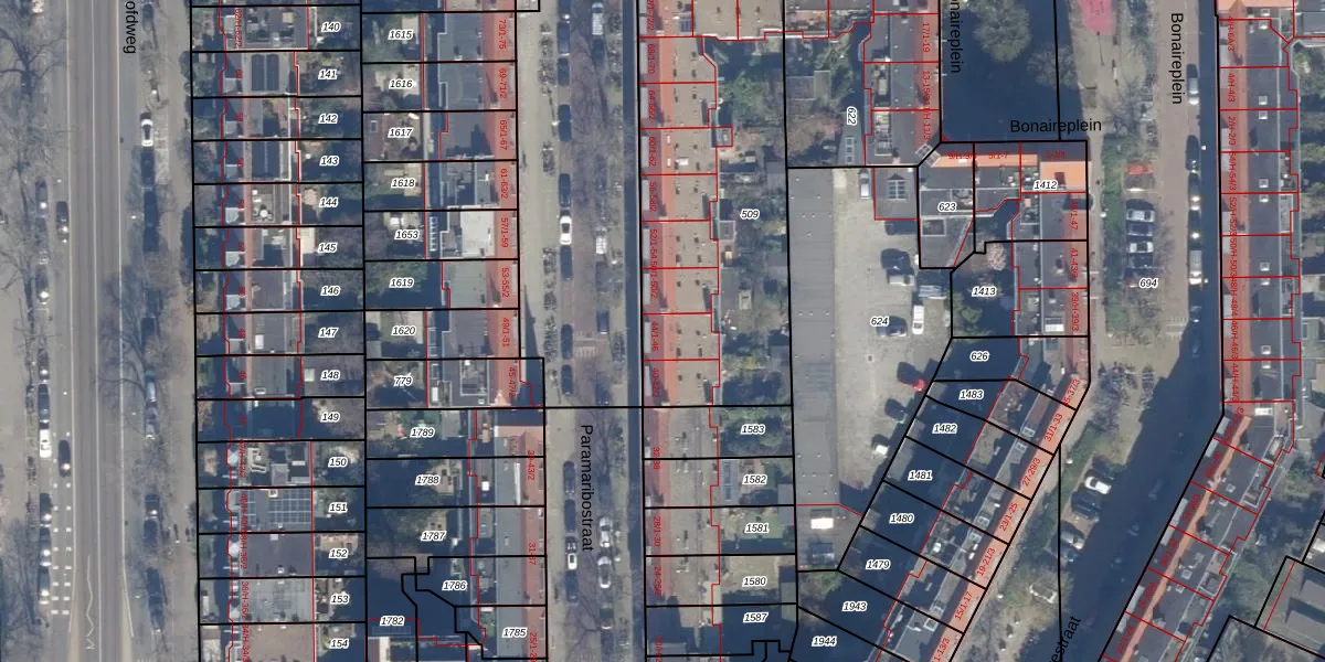 Het perceel waarop Paramaribostraat 46 staat heeft een oppervlakte van 1489 m². Dit is een zeer groot perceel. De perceeloppervlakte wordt geregistreerd door het Kadaster. Gedetailleerde informatie over de maten van dit perceel kunt u vinden in het rapport Kadastrale kaart met maatvoering van Paramaribostraat 46.