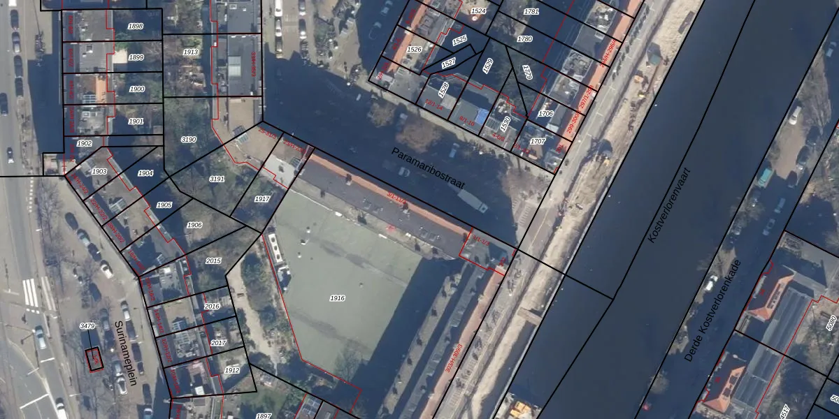 Het perceel waarop Paramaribostraat 5-H staat heeft een oppervlakte van 2938 m². Dit is een zeer groot perceel. De perceeloppervlakte wordt geregistreerd door het Kadaster. Gedetailleerde informatie over de maten van dit perceel kunt u vinden in het rapport Kadastrale kaart met maatvoering van Paramaribostraat 5-H.