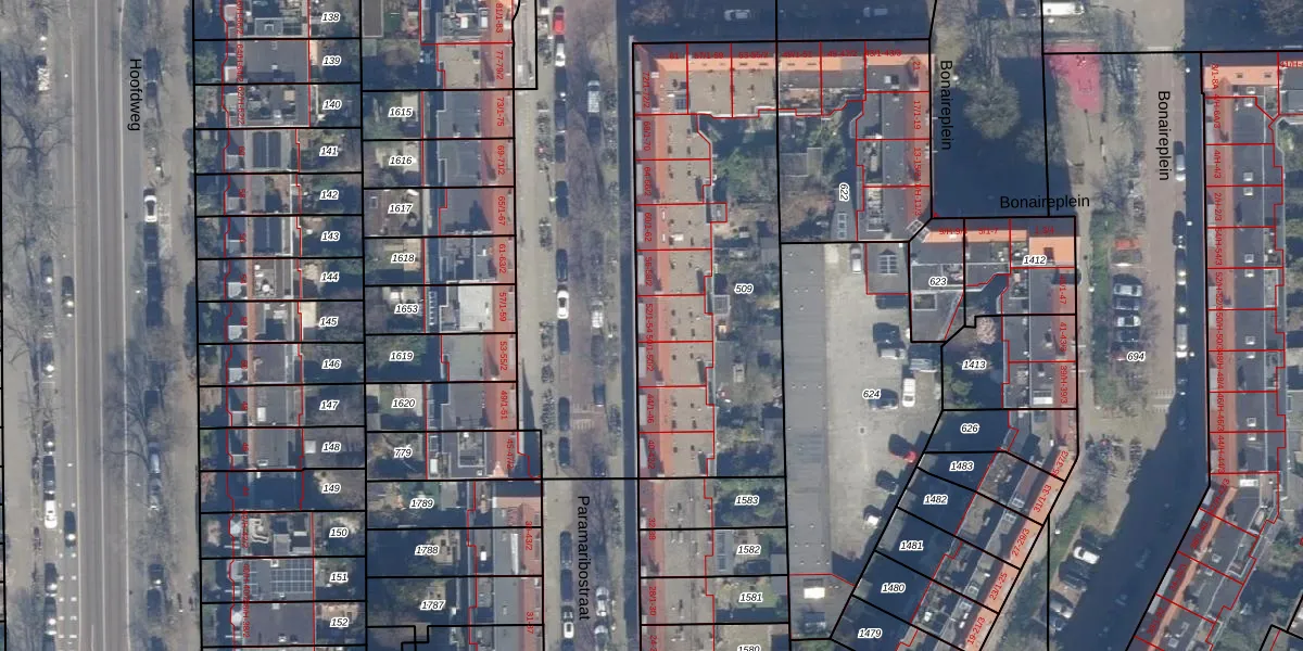 Paramaribostraat 52-2 is gelegen op kadastraal perceel STN02M509. Deze kadastrale aanduiding is uniek en wordt gebruikt door het Kadaster om eigendomsrechten en andere zakelijke rechten vast te leggen. Het perceel maakt onderdeel uit van de kadastrale gemeente Sloten Noord-Holland.