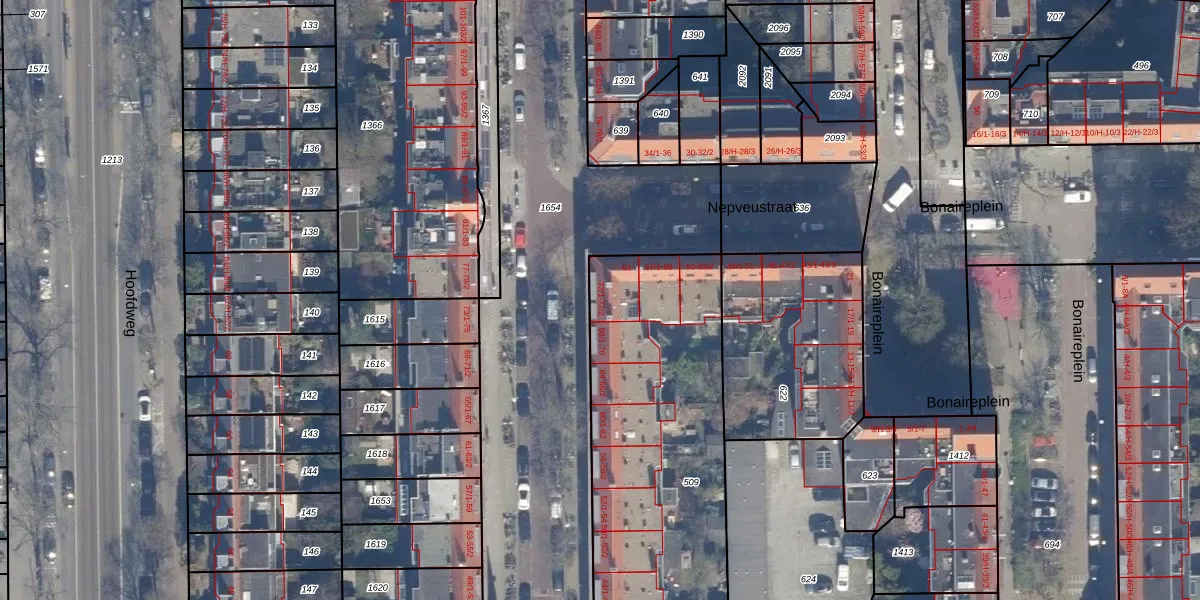 Het perceel waarop Paramaribostraat 72-2 staat heeft een oppervlakte van 1489 m². Dit is een zeer groot perceel. De perceeloppervlakte wordt geregistreerd door het Kadaster. Gedetailleerde informatie over de maten van dit perceel kunt u vinden in het rapport Kadastrale kaart met maatvoering van Paramaribostraat 72-2.