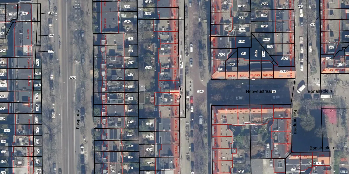 Het perceel waarop Paramaribostraat 85 staat heeft een oppervlakte van 1333 m². Dit is een zeer groot perceel. De perceeloppervlakte wordt geregistreerd door het Kadaster. Gedetailleerde informatie over de maten van dit perceel kunt u vinden in het rapport Kadastrale kaart met maatvoering van Paramaribostraat 85.