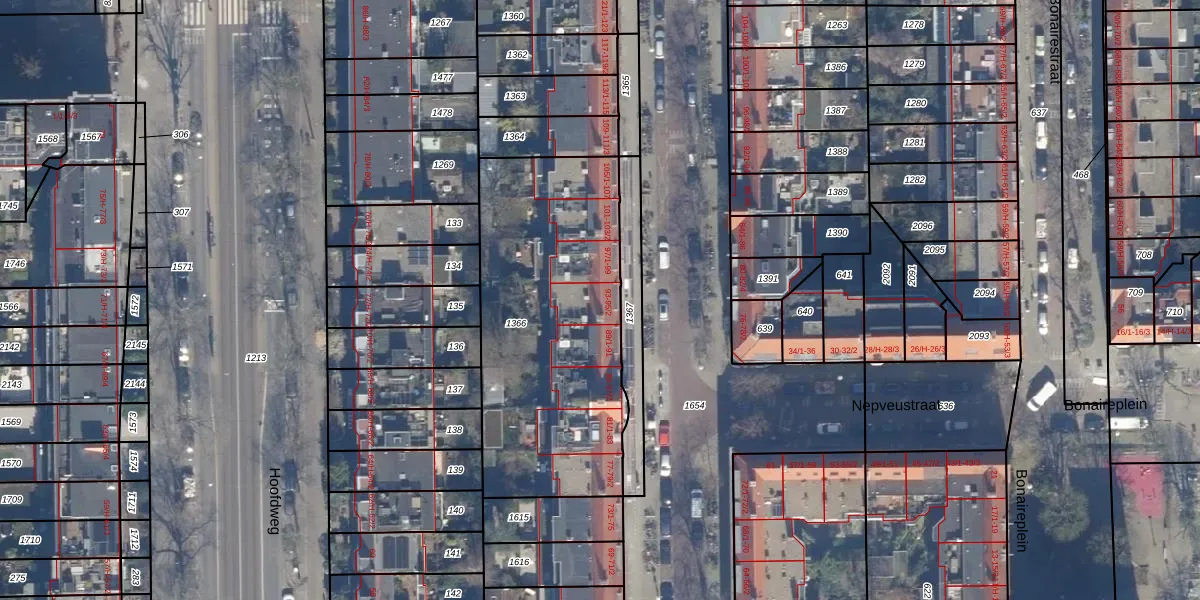 Paramaribostraat 93 is gelegen op kadastraal perceel STN02M1366. Deze kadastrale aanduiding is uniek en wordt gebruikt door het Kadaster om eigendomsrechten en andere zakelijke rechten vast te leggen. Het perceel maakt onderdeel uit van de kadastrale gemeente Sloten Noord-Holland.