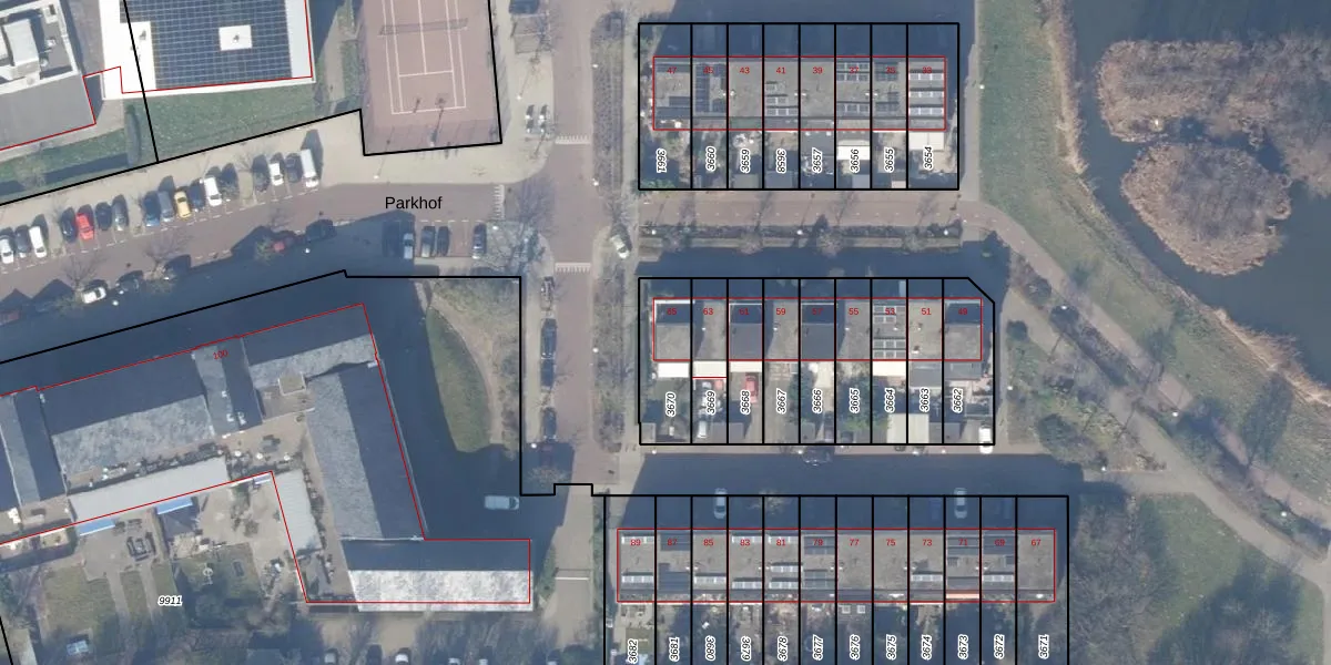 Het perceel waarop Parkhof 65 staat heeft een oppervlakte van 198 m². Dit is een middelgroot perceel. De perceeloppervlakte wordt geregistreerd door het Kadaster. Gedetailleerde informatie over de maten van dit perceel kunt u vinden in het rapport Kadastrale kaart met maatvoering van Parkhof 65.