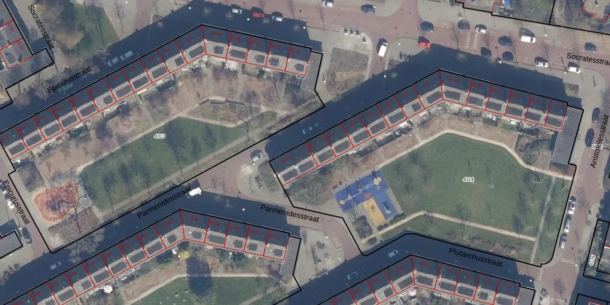 Parmenidesstraat 15 is gelegen op kadastraal perceel STN02D4314. Deze kadastrale aanduiding is uniek en wordt gebruikt door het Kadaster om eigendomsrechten en andere zakelijke rechten vast te leggen. Het perceel maakt onderdeel uit van de kadastrale gemeente Sloten Noord-Holland.