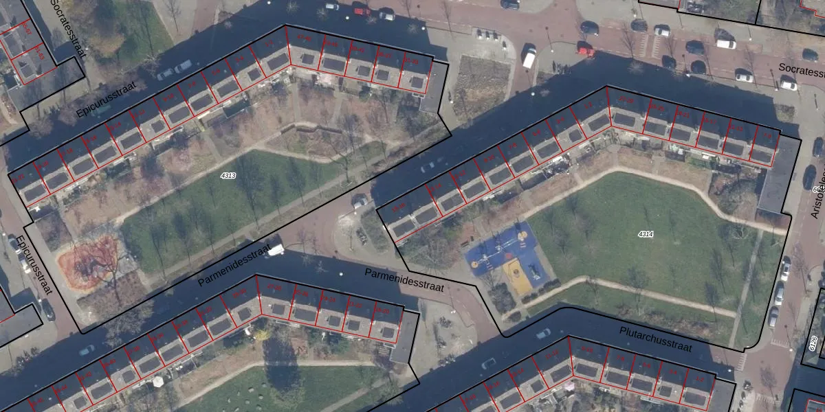 Het perceel waarop Parmenidesstraat 16 staat heeft een oppervlakte van 4322 m². Dit is een zeer groot perceel. De perceeloppervlakte wordt geregistreerd door het Kadaster. Gedetailleerde informatie over de maten van dit perceel kunt u vinden in het rapport Kadastrale kaart met maatvoering van Parmenidesstraat 16.