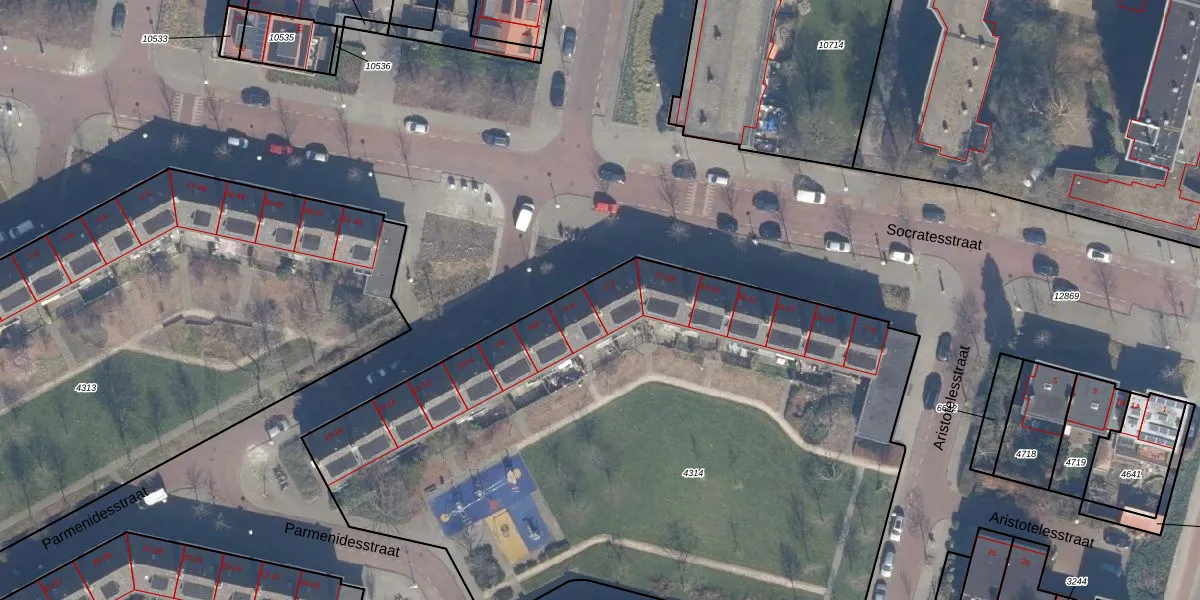 Het perceel waarop Parmenidesstraat 2 staat heeft een oppervlakte van 4322 m². Dit is een zeer groot perceel. De perceeloppervlakte wordt geregistreerd door het Kadaster. Gedetailleerde informatie over de maten van dit perceel kunt u vinden in het rapport Kadastrale kaart met maatvoering van Parmenidesstraat 2.