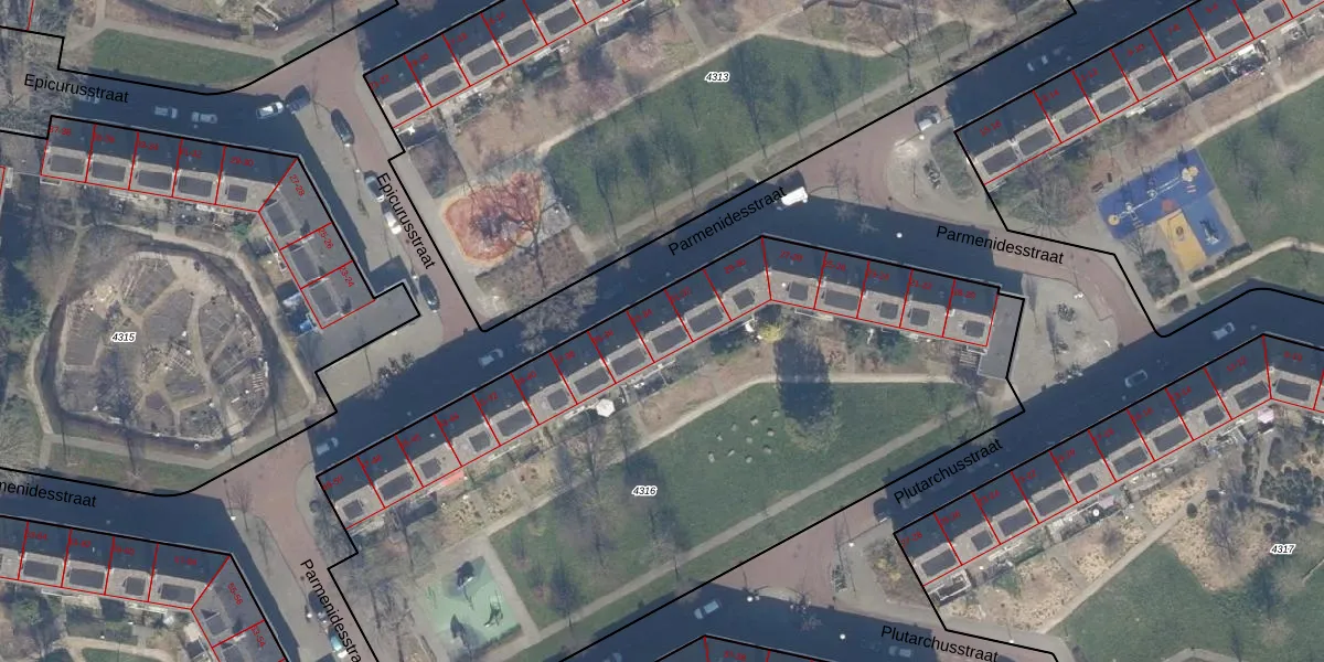 Parmenidesstraat 33 is gelegen op kadastraal perceel STN02D4316. Deze kadastrale aanduiding is uniek en wordt gebruikt door het Kadaster om eigendomsrechten en andere zakelijke rechten vast te leggen. Het perceel maakt onderdeel uit van de kadastrale gemeente Sloten Noord-Holland.
