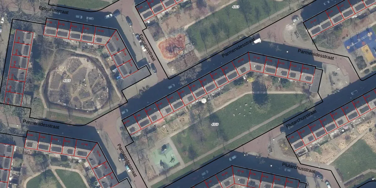 Het perceel waarop Parmenidesstraat 39 staat heeft een oppervlakte van 4167 m². Dit is een zeer groot perceel. De perceeloppervlakte wordt geregistreerd door het Kadaster. Gedetailleerde informatie over de maten van dit perceel kunt u vinden in het rapport Kadastrale kaart met maatvoering van Parmenidesstraat 39.