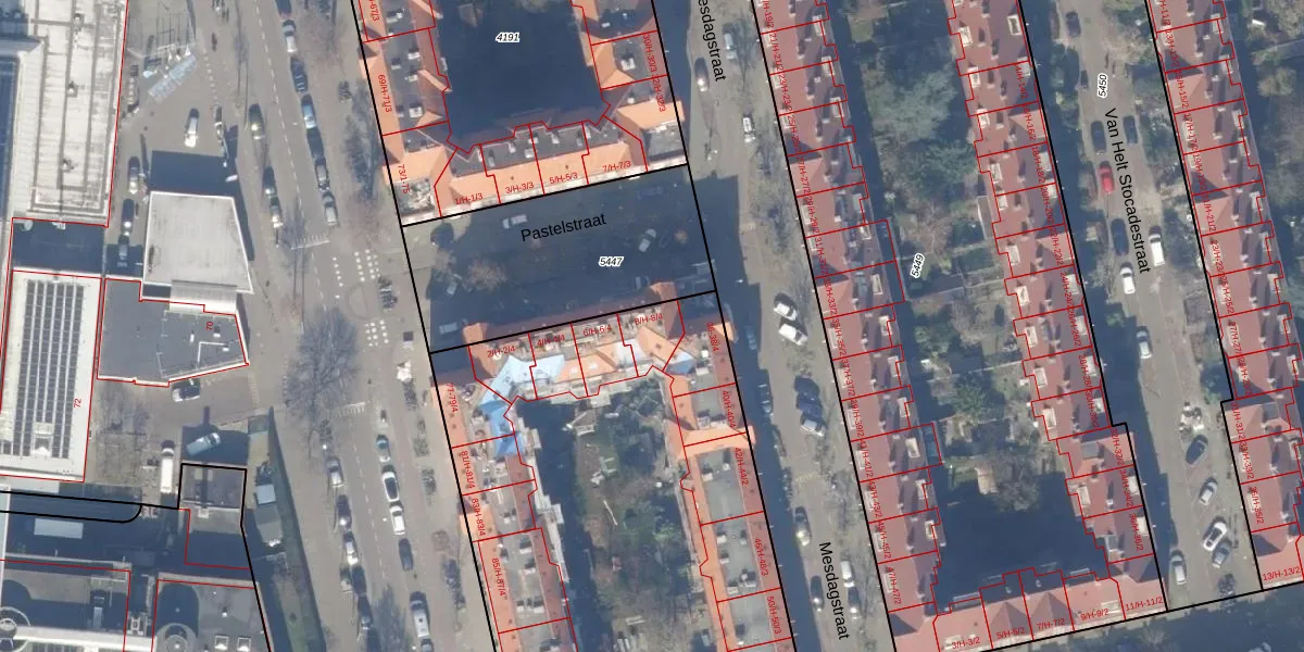 Pastelstraat 8-1 is gelegen op kadastraal perceel ASD18V4192. Deze kadastrale aanduiding is uniek en wordt gebruikt door het Kadaster om eigendomsrechten en andere zakelijke rechten vast te leggen. Het perceel maakt onderdeel uit van de kadastrale gemeente Amsterdam.