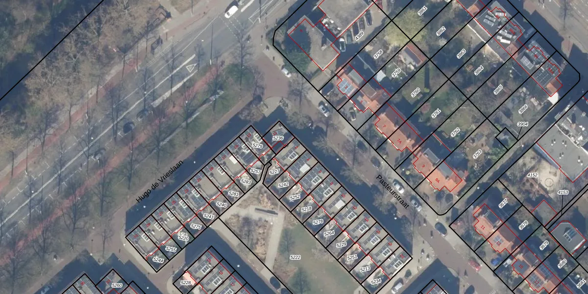 Het perceel waarop Pasteurstraat 2 staat heeft een oppervlakte van 97 m². Dit is een klein perceel. De perceeloppervlakte wordt geregistreerd door het Kadaster. Gedetailleerde informatie over de maten van dit perceel kunt u vinden in het rapport Kadastrale kaart met maatvoering van Pasteurstraat 2.