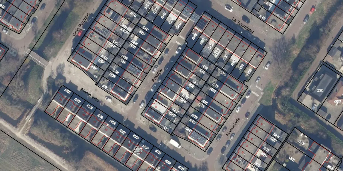 Het perceel waarop Pasubio 9 staat heeft een oppervlakte van 108 m². Dit is een middelgroot perceel. De perceeloppervlakte wordt geregistreerd door het Kadaster. Gedetailleerde informatie over de maten van dit perceel kunt u vinden in het rapport Kadastrale kaart met maatvoering van Pasubio 9.