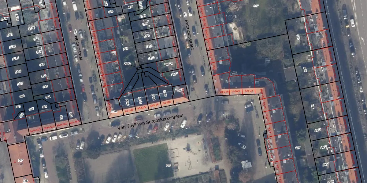 Patroclosstraat 20-3 is gelegen op kadastraal perceel ASD23AB2606. Deze kadastrale aanduiding is uniek en wordt gebruikt door het Kadaster om eigendomsrechten en andere zakelijke rechten vast te leggen. Het perceel maakt onderdeel uit van de kadastrale gemeente Amsterdam.