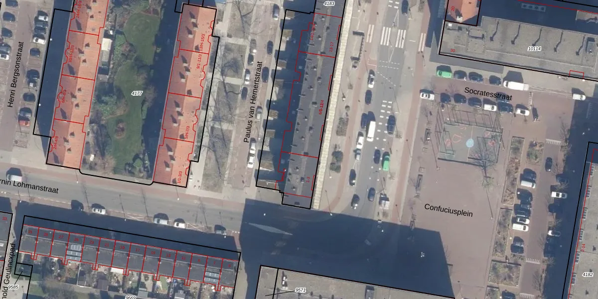 Het perceel waarop Paulus van Hemertstraat 6-1 staat heeft een oppervlakte van 2462 m². Dit is een zeer groot perceel. De perceeloppervlakte wordt geregistreerd door het Kadaster. Gedetailleerde informatie over de maten van dit perceel kunt u vinden in het rapport Kadastrale kaart met maatvoering van Paulus van Hemertstraat 6-1.