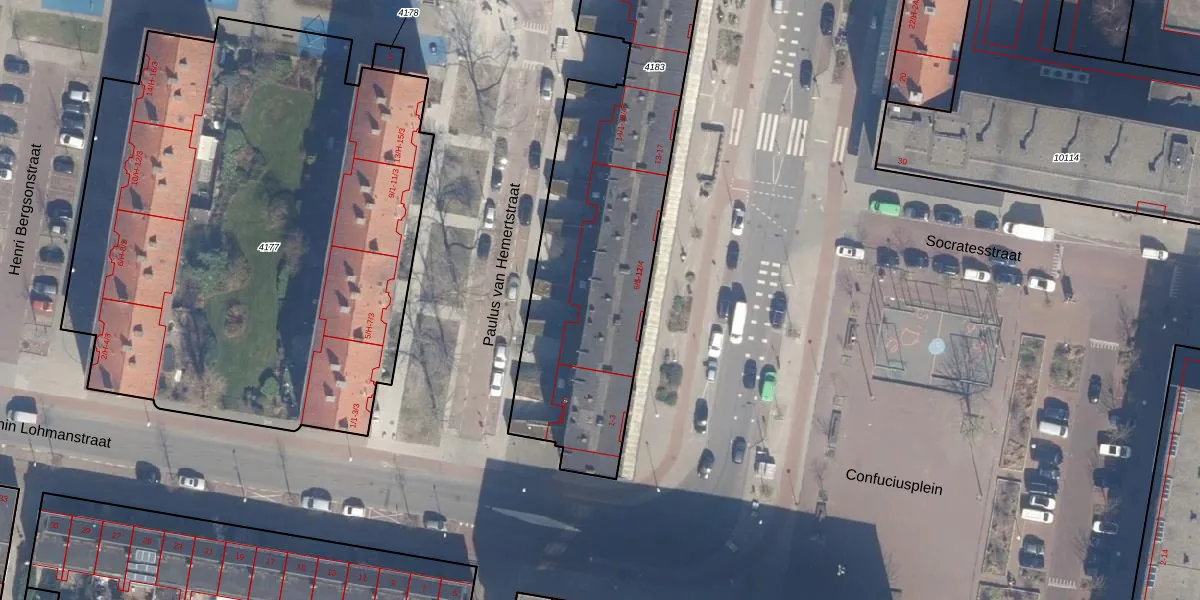 Het perceel waarop Paulus van Hemertstraat 8-4 staat heeft een oppervlakte van 2462 m². Dit is een zeer groot perceel. De perceeloppervlakte wordt geregistreerd door het Kadaster. Gedetailleerde informatie over de maten van dit perceel kunt u vinden in het rapport Kadastrale kaart met maatvoering van Paulus van Hemertstraat 8-4.