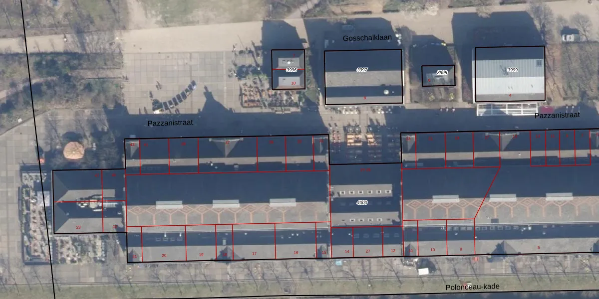 Het perceel waarop Pazzanistraat 33 staat heeft een oppervlakte van 7389 m². Dit is een zeer groot perceel. De perceeloppervlakte wordt geregistreerd door het Kadaster. Gedetailleerde informatie over de maten van dit perceel kunt u vinden in het rapport Kadastrale kaart met maatvoering van Pazzanistraat 33.