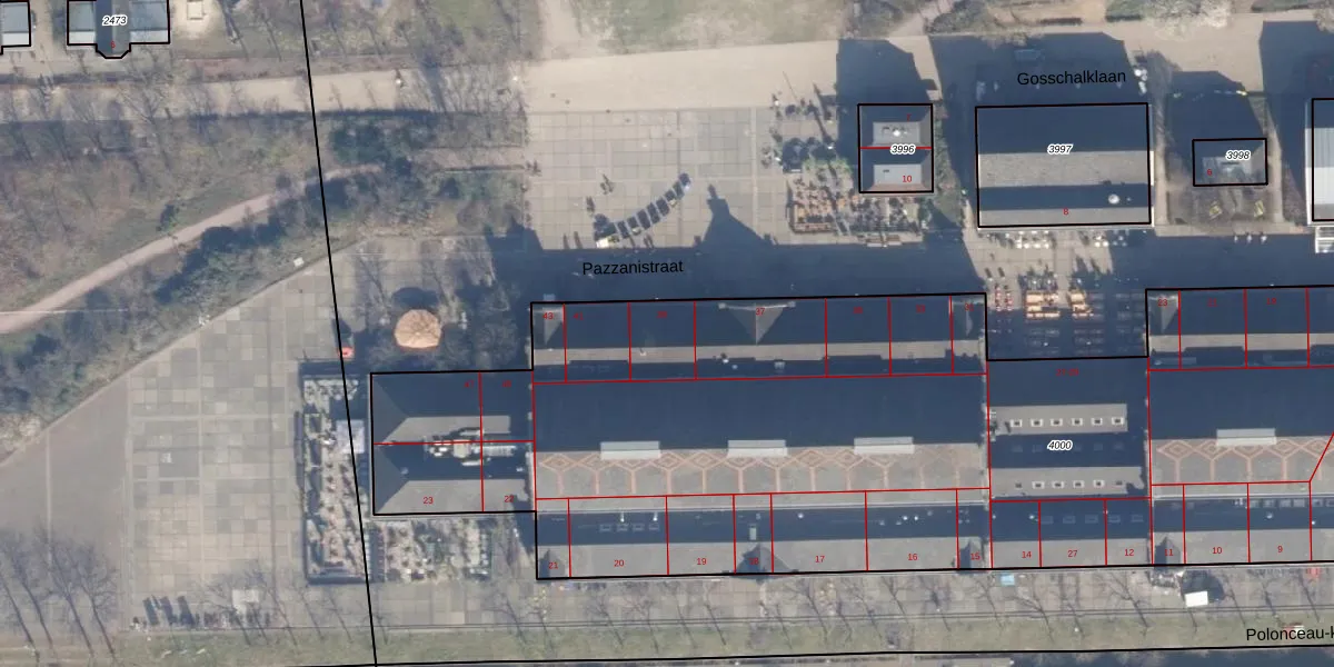 Het perceel waarop Pazzanistraat 39 staat heeft een oppervlakte van 7389 m². Dit is een zeer groot perceel. De perceeloppervlakte wordt geregistreerd door het Kadaster. Gedetailleerde informatie over de maten van dit perceel kunt u vinden in het rapport Kadastrale kaart met maatvoering van Pazzanistraat 39.
