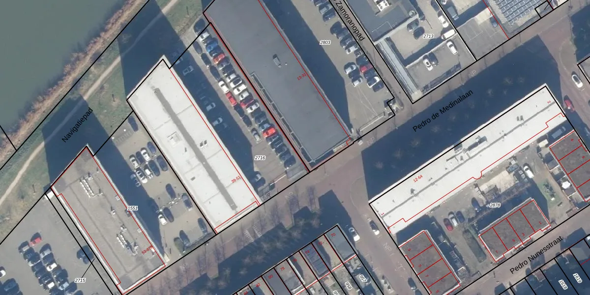 Pedro de Medinalaan 13 is gelegen op kadastraal perceel ASD41AU2803. Deze kadastrale aanduiding is uniek en wordt gebruikt door het Kadaster om eigendomsrechten en andere zakelijke rechten vast te leggen. Het perceel maakt onderdeel uit van de kadastrale gemeente Amsterdam.
