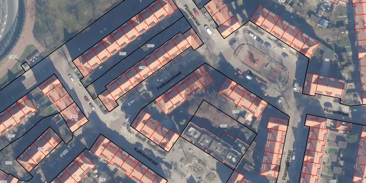 Het perceel waarop Pelikaanstraat 20-1 staat heeft een oppervlakte van 2600 m². Dit is een zeer groot perceel. De perceeloppervlakte wordt geregistreerd door het Kadaster. Gedetailleerde informatie over de maten van dit perceel kunt u vinden in het rapport Kadastrale kaart met maatvoering van Pelikaanstraat 20-1.