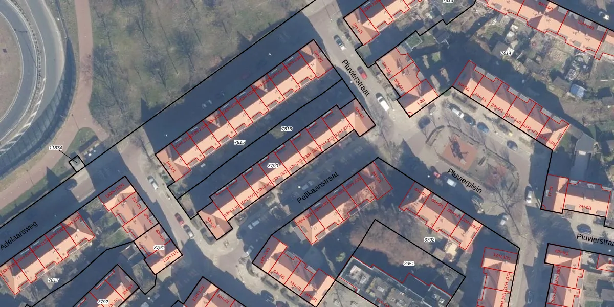 Het perceel waarop Pelikaanstraat 23-H staat heeft een oppervlakte van 665 m². Dit is een groot perceel. De perceeloppervlakte wordt geregistreerd door het Kadaster. Gedetailleerde informatie over de maten van dit perceel kunt u vinden in het rapport Kadastrale kaart met maatvoering van Pelikaanstraat 23-H.