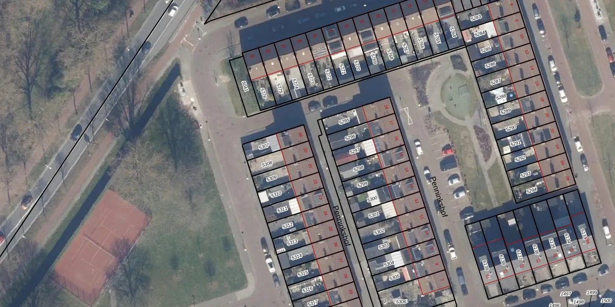 Penninkshof 20 is gelegen op kadastraal perceel STN02G5308. Deze kadastrale aanduiding is uniek en wordt gebruikt door het Kadaster om eigendomsrechten en andere zakelijke rechten vast te leggen. Het perceel maakt onderdeel uit van de kadastrale gemeente Sloten Noord-Holland.