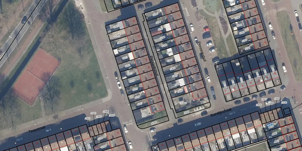 Gebruik de zoekbalk of klik op een perceel voor informatie over de adressen binnen dit perceel.