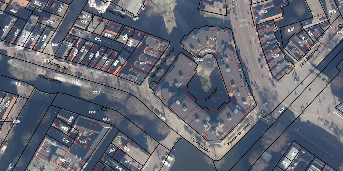 Het perceel waarop Pentagon 65 staat heeft een oppervlakte van 1996 m². Dit is een zeer groot perceel. De perceeloppervlakte wordt geregistreerd door het Kadaster. Gedetailleerde informatie over de maten van dit perceel kunt u vinden in het rapport Kadastrale kaart met maatvoering van Pentagon 65.