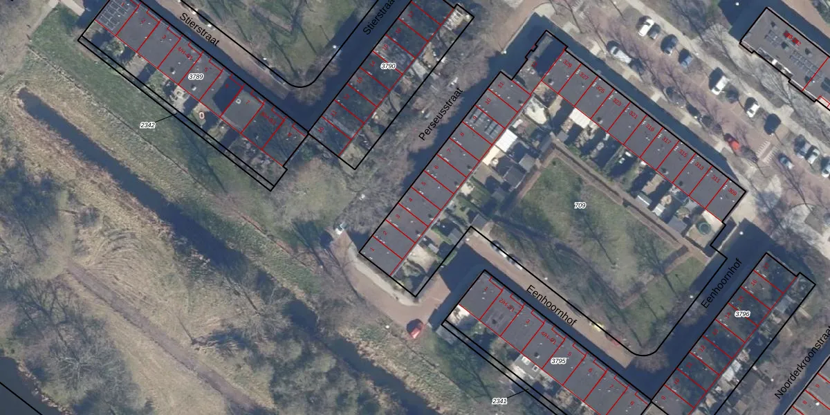 Het perceel waarop Perseusstraat 4 staat heeft een oppervlakte van 3603 m². Dit is een zeer groot perceel. De perceeloppervlakte wordt geregistreerd door het Kadaster. Gedetailleerde informatie over de maten van dit perceel kunt u vinden in het rapport Kadastrale kaart met maatvoering van Perseusstraat 4.