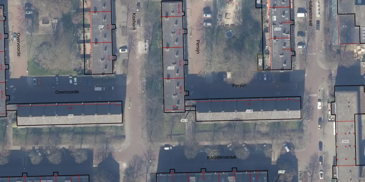 Het perceel waarop Persijn 40-2 staat heeft een oppervlakte van 723 m². Dit is een groot perceel. De perceeloppervlakte wordt geregistreerd door het Kadaster. Gedetailleerde informatie over de maten van dit perceel kunt u vinden in het rapport Kadastrale kaart met maatvoering van Persijn 40-2.