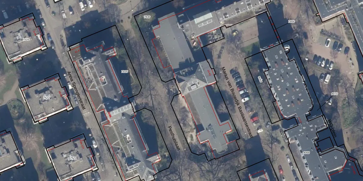 Het perceel waarop Pesthuislaan 77 staat heeft een oppervlakte van 3545 m². Dit is een zeer groot perceel. De perceeloppervlakte wordt geregistreerd door het Kadaster. Gedetailleerde informatie over de maten van dit perceel kunt u vinden in het rapport Kadastrale kaart met maatvoering van Pesthuislaan 77.