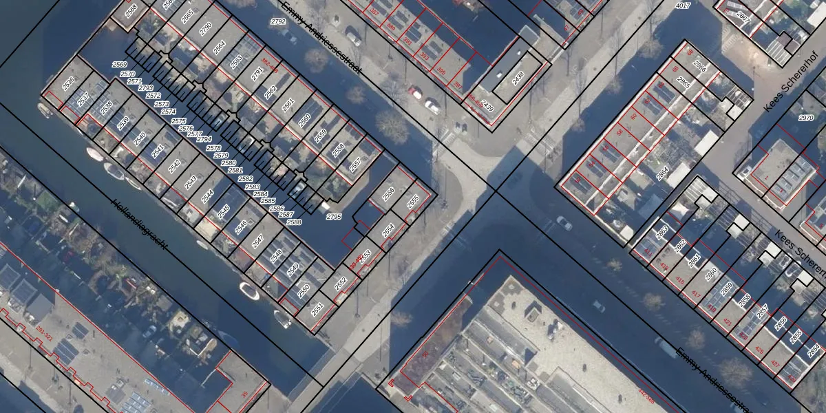 Het adres ligt op het perceel ASD41-AU-2555, dat zich in de kadastrale gemeente Amsterdam bevindt. Het perceel is 64 m² groot. Dat is kleiner dan de gemiddelde perceeloppervlakte in Amsterdam, dat op 7285,32 m² ligt. De grootste perceeloppervlakte in de kadastrale gemeente is 2,75 km². De kleinste oppervlakte bedraagt 0 m². Op het perceel liggen in totaal 2 adressen. In de Basisregistratie Kadaster (BRK) werden de grenzen van het perceel geregistreerd op 03-12-2010.