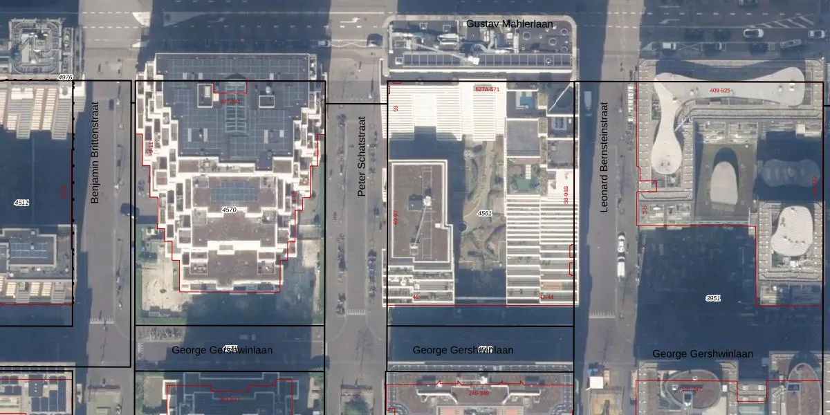 Het adres ligt op het perceel ASD30-AK-4561, dat zich in de kadastrale gemeente Amsterdam bevindt. De oppervlakte van het perceel is 2655 m². Dat is groter dan gemiddeld in Amsterdam, waar de gemiddelde perceeloppervlakte op 1335,63 m² ligt. Het kleinste perceel in de kadastrale gemeente is 0 m² groot. De grootste perceeloppervlakte is 22,2 ha. Er zijn 180 adressen aanwezig op het perceel. De huidige grenzen van het perceel zijn digitaal in de Basisregistratie Kadaster (BRK) geregistreerd op 30-10-2018.