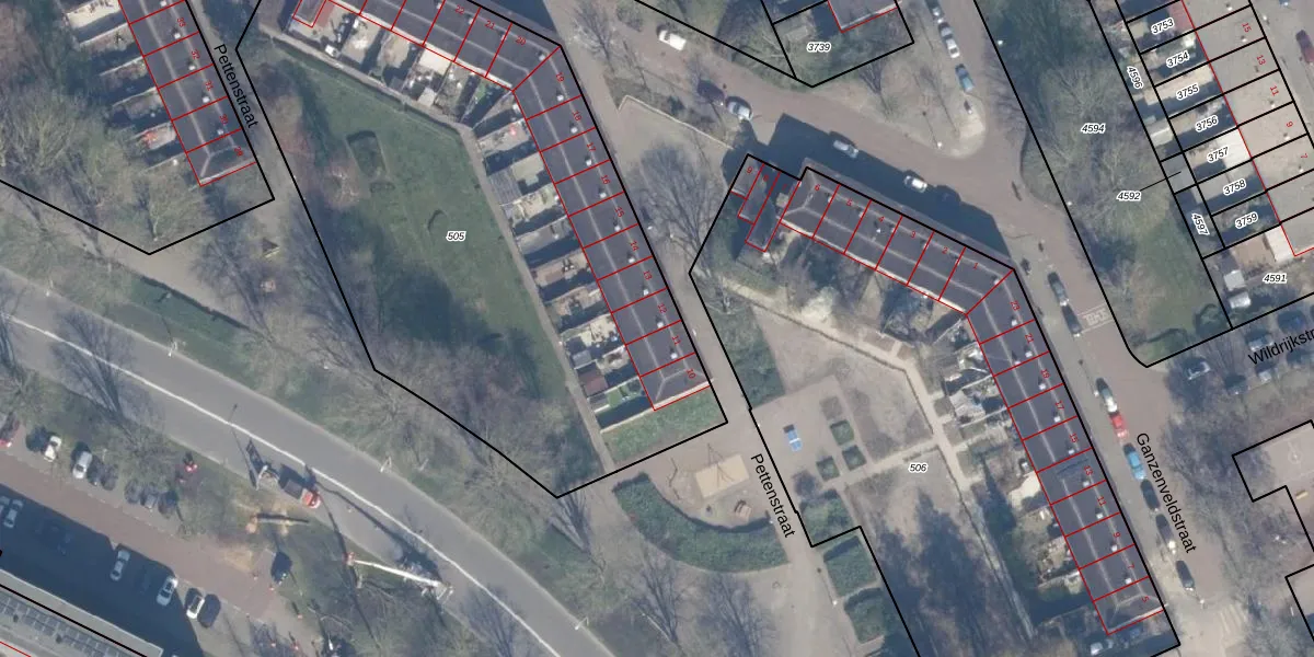 Het perceel waarop Pettenstraat 12 staat heeft een oppervlakte van 3493 m². Dit is een zeer groot perceel. De perceeloppervlakte wordt geregistreerd door het Kadaster. Gedetailleerde informatie over de maten van dit perceel kunt u vinden in het rapport Kadastrale kaart met maatvoering van Pettenstraat 12.